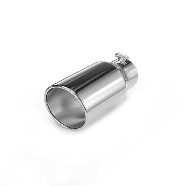 - Stylish Look: Polished finish with rolled edge and slant cut for a unique, aggressive look. 6” outlet enhances exhaust appearance.