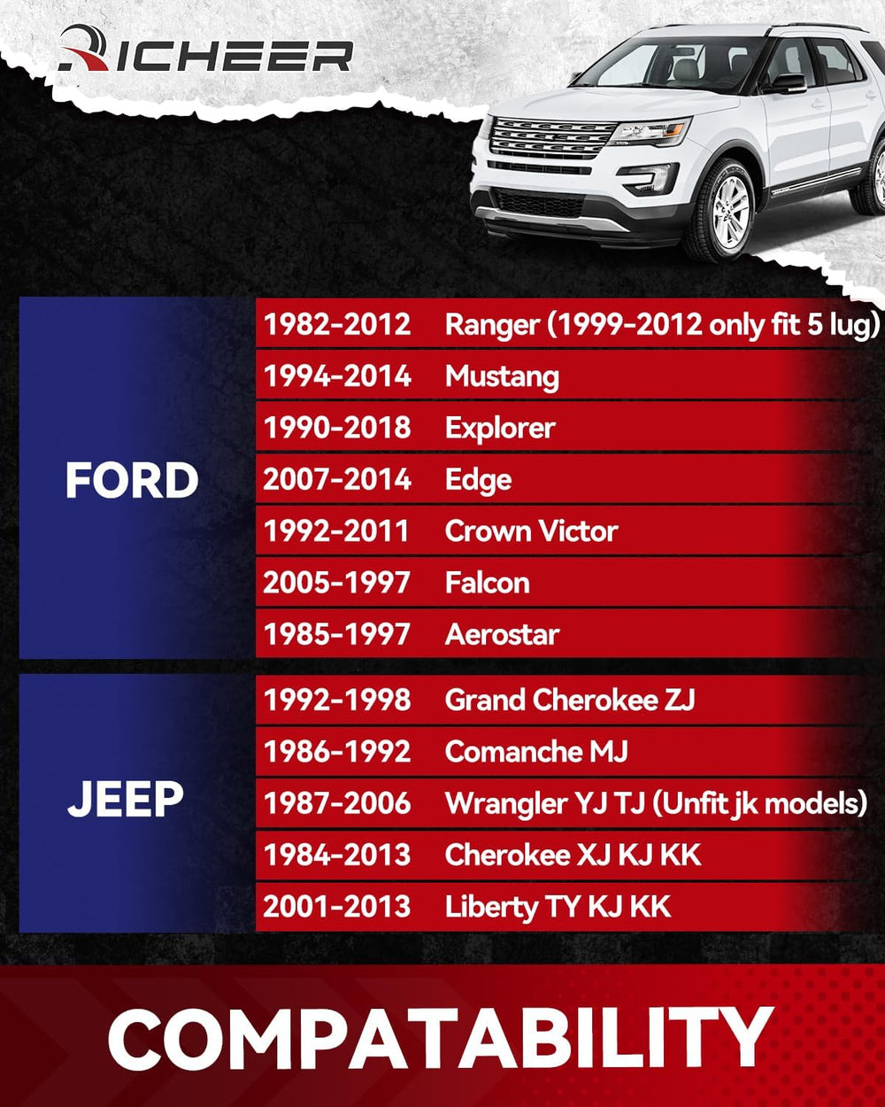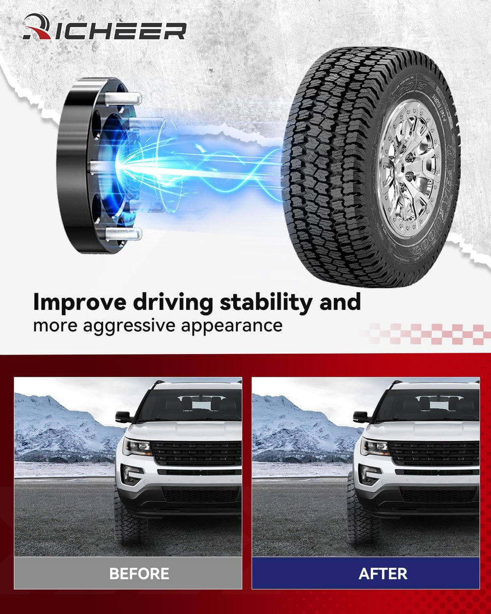 Richeer was born from a love for the outdoors. For over 30 years, we’ve crafted high-performance parts like wheel spacers and lift kits to enhance safety, stability, and power in any terrain. Whether you're an expert or a DIY enthusiast, our user-friendly designs make customization easy. Rigorously tested and built for durability, Richeer delivers reliable, cost-effective solutions to help you conquer new horizons with confidence.