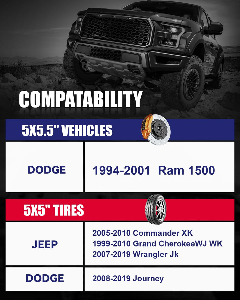 Vehicle Bolt Pattern5x5.5"(5x139.7 MM)