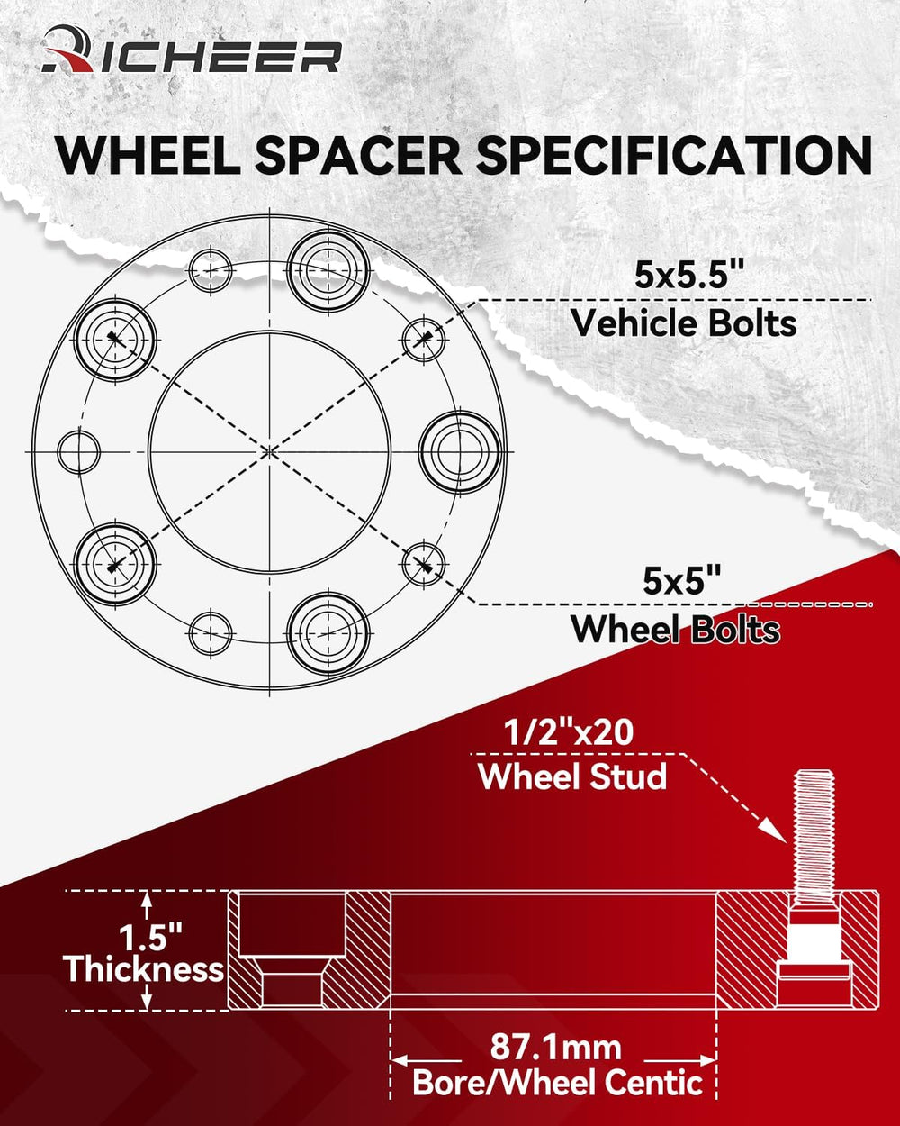 Richeer 1.5" 5x5.5" to 5x5“ Wheel Adapter for Off-Road Vehicles (Ford, Ram & More)