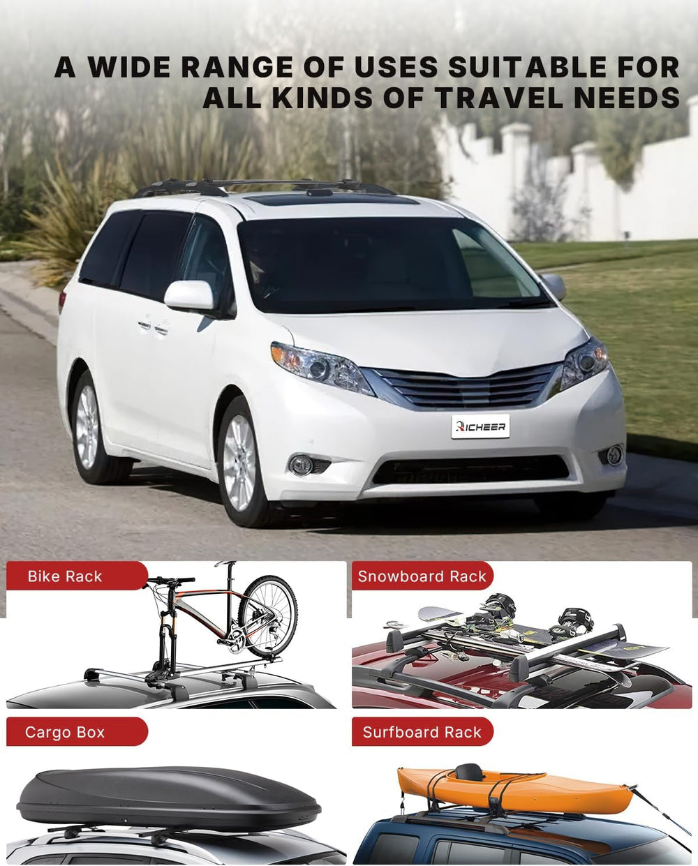 Richeer 165LBS Roof Rack Cross Bars Aluminum Cross Bar (2011-2020 Sienna)