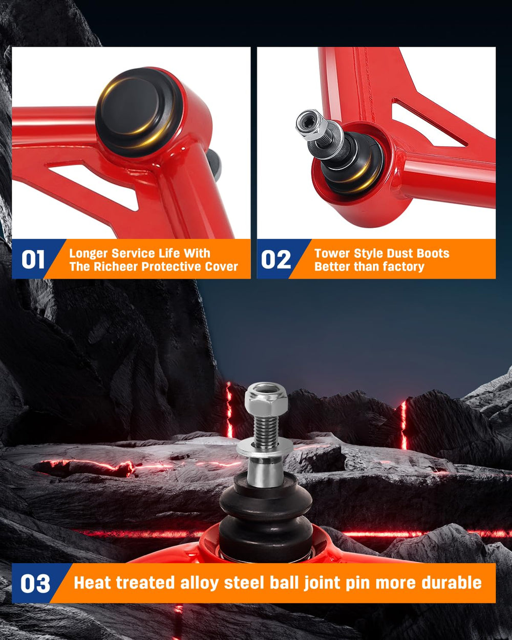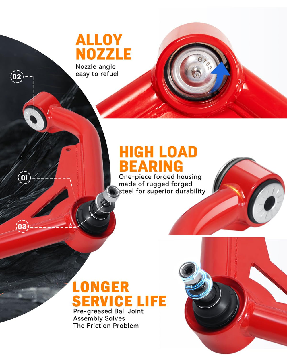 Richeer 2-4" Front Upper Control Arms & 2-4" Lift Suspension Kit Adjustable Control Arm (2000-2010 Silverado, 2000-2010 Sierra, 2003-2009 H2)