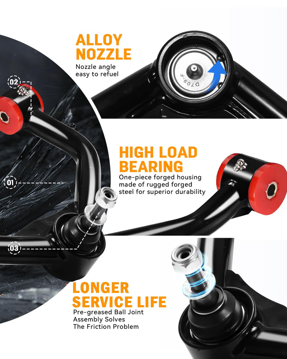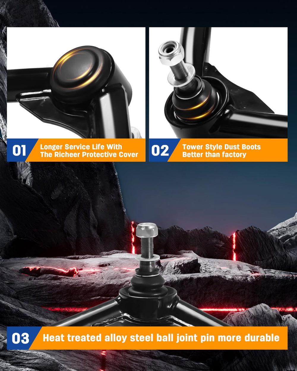 Richeer Front Upper Control Arms for 2-4" Lift Fits (2009-2018 RAM 1500 4WD with Ball Joint)